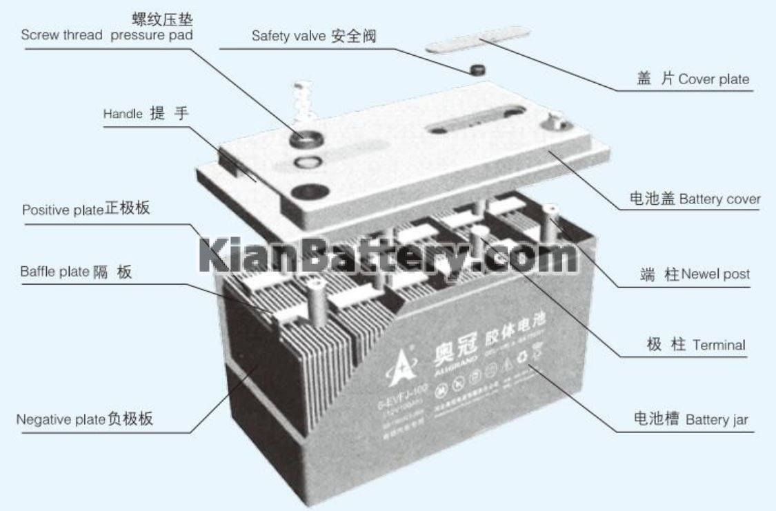 قسمت های مختلف باتری خودرو شامل موارد زیر می باشد: