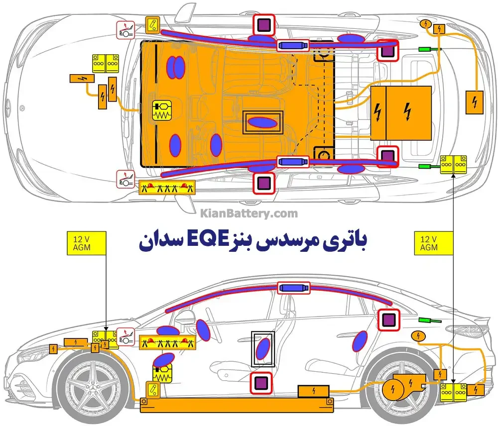 - باتری فابریک مرسدس بنز ای کیو ای EQE سدان : باتری 80 آمپر پایه کوتاه قالب L4