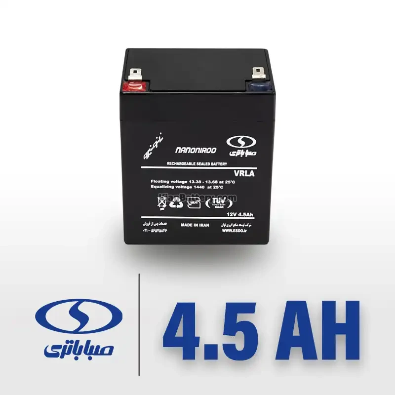 باتری 4.5 آمپر صبا، محصولی از شرکت صبا باتری بوده و با تکنولوژی سیلد اسید تولید می‌شود. این باتری با ارائه عملکردی ثابت و مطمئن، انتخابی ایده‌آل برای موتورسیکلت‌های سبک و اسکوترها است.