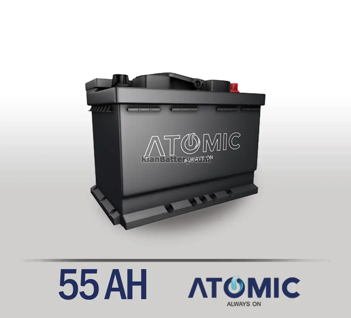 - باتری 55 آمپر اتمیک مناسب خودروهای سواری با ابعاد متوسط و مصرف برق استاندارد است.