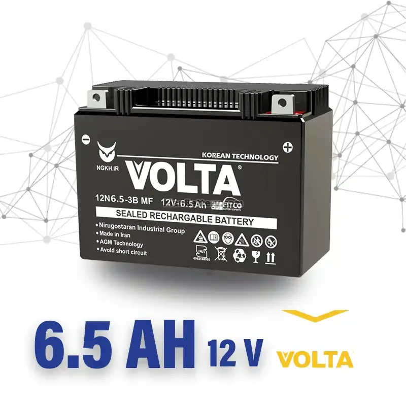 باتری 6.5 آمپر ساعت ولتا، تولید شرکت نیرو گستران خراسان، یک انتخاب ایده‌آل برای تأمین انرژی موتورسیکلت‌هایی با حجم موتور متوسط است. این باتری با مدل 12N6.5 از فناوری پیشرفته AGM بهره می‌برد و با ساختار کاملاً مهر و موم شده VRLA طراحی شده است. بدنه این باتری از پلیمر ABS فوق مستحکم ساخته شده است. این جنس مقاوم در برابر لرزش‌ها، ضربات مسیر و نوسانات دمایی محیط، تضمین می‌کند که باتری شما در شرایط سخت رانندگی روزانه، دوام و طول عمر بیشتری داشته باشد.